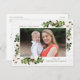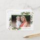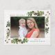 Envíe saludos de vacaciones a amigos y familia con nuestra postal de vacaciones de Charm del Sur. La rústica postal de vacaciones muestra tu foto en la parte delantera enmarcada por dos ramos de hojas de acuarela verde y algodón con fondo de shiplap de madera blanquecina. Personalice la parte delantera de la tarjeta agregando su nombre y un saludo personalizado. En la parte posterior de la tarjeta hay espacio para la dirección de retorno, el saludo del personalizado y sus nombres.