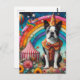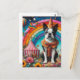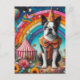 Un adorable Boston Terrier vestido con un lindo atuendo con una carpa de circo en el fondo de IA generó arte