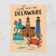 Adéntrate en la historia con esta encantadora postal "Meet Me in Delaware", que presenta una deliciosa colección de iconos de Delaware en un divertido estilo de garabatos. Esta caprichosa postal ilustrada captura la rica importancia histórica del estado y su hermosa costa. Muestra todo, desde un tributo a Caesar Rodney y la Old State House hasta un faro clásico y, por supuesto, el famoso cangrejo azul. Las ilustraciones juguetonas y la letra clara hacen de esta postal un tributo único y memorable a Delaware, EE. UU.