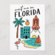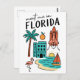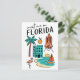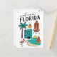 Escapa al 'Estado del Sol' con esta encantadora postal 'Nos vemos en Florida', que presenta una deliciosa colección de iconos de Florida en un divertido estilo de garabatos. Esta caprichosa postal ilustrada captura las famosas playas del estado, la vida silvestre tropical y el espíritu innovador. Muestra todo, desde un clásico lanzamiento del transbordador espacial y un flamenco elegante hasta una escena de playa de arena con un barco de vela, una vibrante naranja y un hotel. Las ilustraciones juguetonas y la letra clara hacen de esta postal un homenaje único y memorable a Florida, EE. UU.