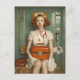 En un retrato conmovedor, una enfermera con uniforme vintage se pone de pie con una mirada compasiva, su actitud serena yuxtapuesta con una lesión visible en su rodilla. Es un testimonio de su dedicación, resiliencia y compromiso inquebrantable con el cuidado.