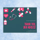 Celebre a los héroes cotidianos con matorrales con esta atrevida tarjeta postal del Día de las Enfermeras que muestra íconos médicos limpios—estetoscopio, jeringa, ambulancia, pastillas—enmarcados contra un vibrante fondo azul verdoso y acentuados en magenta. Cada símbolo habla de cuidado y dedicación, lo que la convierte en una tarjeta de agradecimiento ideal para hospitales, clínicas o mensajes personales. Envíe su gratitud en el Día Nacional de las Enfermeras con un diseño que honra su compasión y arduo trabajo.
