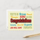 Este divertido diseño gráfico de color retro es genial para enviar sus felicitaciones por: nuevo trabajo, recién nacido, promoción, graduación, aniversario, boda, compromiso, buenas noticias, celebraciones, adopción y más.