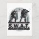 Dos S.W.A.T. fuertemente armados ¡los miembros del equipo con escudos se preparan para la batalla! Gran S.W.A.T. a continuación se presenta un texto de texto y un texto más pequeño sobre armas y tácticas especiales. ¡Un gran equipo de SWAT y regalos de las fuerzas del orden!