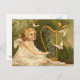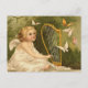 Una obra de arte de ángel de época con un ángel tocando un instrumento musical y observando mariposas.
