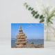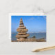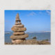 Cairn de piedra frente al cielo azul y el océano