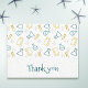 Tarjeta postal de agradecimiento científica sencilla para uso personal o de su negocio relacionado con la ciencia. Atiende a la biología, química, física, medicina o cualquier otro campo científico. La tarjeta postal tiene un patrón de equipo de laboratorio de investigación como tubos de ensayo, matraces y frascos de vidrio en hermosos colores amarillo y azul. Para complementar el patrón, hay algunas moléculas en colores grises. Diseñado por Patricia Alvarez.