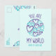 "Eres Mi Mundo" tarjeta postal, la forma perfecta de expresar tu amor y gratitud a alguien especial en tu vida. Un mensaje simple pero significativo que captura la esencia de tus emociones. Todo el texto es modificable para adecuarlo a tu mensaje y dirigirte a tu ser querido de manera personal.