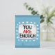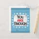 "Eres suficiente" es una bonita cita inspiradora o motivacional con una forma de acento blanco rodeada de puntos caprichosos de textura blanca.