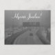 Erilainen ja realistinen joulukortti, jossa todenmukainen joulusää, eli vetistä loskaa sumuisena iltana kehä ykösen jouluruhkassa.