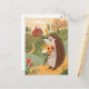 Una divertida ilustración de estilo arte popular de un erizo con un ramo de flores, la tarjeta postal perfecta para cumpleaños y otras felicitaciones para mostrar tu amor a un amante de los animales.
