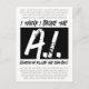 Luddites, desarrolladores/programadores de IA, testadores de *y* IA, ¡únanse! Celebrar el 16 de julio (Día de Apreciación de Inteligencia Artificial) o el 12 de setiembre (Día Internacional de los Programadores) con esta graciosa postal, que presenta el meme, "Creo que rompí el AI (y, en letra más fina, 'La curiosidad mató al ChatBot')", bordeado por una multitud de preguntas (sin respuesta) en gris. Este diseño se basó en mi experiencia inaugural con el chatbot de IA; simplemente lo abrumé con mi multitud de preguntas (de la misma manera que los niños pimientan a sus padres con preguntas de un gazillón). (CONSEJO: ¡así es como quitaremos las máquinas!) :) Diseño © W.H. Sim, Todos los derechos reservados. Ver más en zazzle.com/wordsofwhimsy