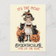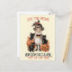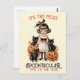 "Es el momento más espeluznante del año" Diseño de estilo vintage de mediados del siglo. Niñita con ropa de estilo antiguo con sus 3 familiares de gatos negros y un par de farolillos