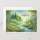 Aquí hay una postal de viaje al estilo acuarela para el Feliz Día de la Tierra, que presenta una exuberante escena forestal con árboles altos, verdes, suave luz solar y un río serpenteante. 🌿 🌎 ✨ El paisaje incluye mariposas, zorros y ardillas lúdicas, creando un ambiente animado e inspirado en la naturaleza. El texto "¡Celebrar el Día de la Tierra!" está en un guión elegante y fluido con una textura acuarela.