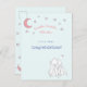 NewParkLane - Tarjeta postal para bebés gemelos, con dos conejos lindos, sentados y mirando fijamente a las estrellas rosas y la luna, y una cita de rima dulce de vivero: "Twinkle, pequeña estrella de arrugas", contra un fondo azul bebé.