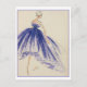 Esta postal es una reproducción de un plato de diseño de moda/sketch de un vestido/vestido púrpura por la noche de Marie-Louise Carven. En la colección del Musée de la Mode de la Ville de Paris, Francia.