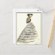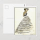 Esta postal es una reproducción de una placa de diseño de moda/boceto de un vestido/vestido de noche blanco y negro por Marie-Louise Carven. En la colección del Musée de la Mode de la Ville de Paris, Francia.