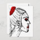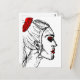 Diseño de una mujer al estilo de los bocetos de modelos de moda. Negro y blanco con resaltes rojos, dibujado originalmente con lápiz sobre papel.