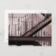 Una postal con una foto digital de color cálido de un enigmático escape de incendios victoriano de hierro forjado fotografiado en el centro de la ciudad de Cardiff. Tal vez reminiscencias de noir de películas, de noir de espionaje y de thrillers. Parece anticipar algún tipo de drama.