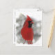 Esta postal tiene un cardenal rojo brillante. ¡Él es verdaderamente el rey de los pájaros traseros! Aquí está encaramado en un riel nevado comiendo semillas negras de girasol de aceite mientras la nieve invernal gira a su alrededor.