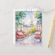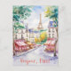 Esta pintura de acuarela representa una encantadora escena callejera en París, Francia. La icónica Torre Eiffel se alza en el fondo, mientras que encantadores cafés y tiendas bordean la calle empedrada. Los colores cálidos y los delicados trazos crean una atmósfera romántica e invitante.