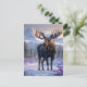 Postal Escena de alce en bosque nevado