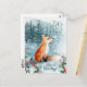Este diseño presenta una ilustración de acuarela de una escena de bosque invernal con zorro. Puede ajustar el texto según sus necesidades.