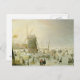 Postal Escena de invierno con patinadores cerca de un mol