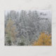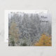 Una escena nevada en Whistler, B.C. Arboles cubiertos de nieve y aún algunos con hojas doradas de otoño...