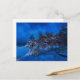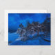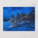 Postal Escena de invierno nocturna con pinos cubiertos de