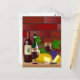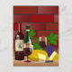 Bonita escena de dos copas llenas de vino tinto y dos botellas de vino, una roja y otra blanca (verde). Un fondo de pared de ladrillo, uvas violetas y hojas verdes, junto con una rueda de queso, se abren en rodajas. Este elegante paisaje vinícola, vinícola o vinícola es un gran personalizable o un regalo personalizado para el propietario de la bodega, el fiesta de degustación de vinos o la señora que ama el vino y la cena. Todos los diseños Copyright © 2012 www.CuteComfy.com Este diseño está disponible como una colección completa!