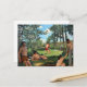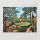 Esta postal presenta un hermoso cuadro titulado "Escena de verano", pintado en 1869 por Jean Frederic Basille. El cuadro representa a un grupo de jóvenes guapos vestidos con trajes de baño, relajados junto a un estanque.