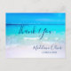 Agua azul y arena blanca con las palabras Gracias que se pueden cambiar por un nombre o eliminar .