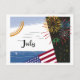 Postal Escenario Art Deco Beach de julio con bandera y fu