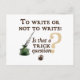 Sólo para todos los escritores, esta parodia de "Ser o no ser" de Hamlet se reformula como "Escribir o no escribir: ¿es una pregunta engañosa?", acompañada de una olla de lino y tinta isabelina.