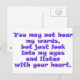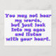 (varios productos seleccionados) "Puede que no oigas mis palabras, pero solamente mires a mis ojos y escuchas con tu corazón". La voz de un niño con discapacidad no se escucha con tanta frecuencia. Escucha con tu corazón y te dirán mucho más de lo que podrías haber imaginado. Este diseño se ofrece en camisetas, tazas, gorras, imanes, regalos y mucho más.