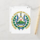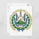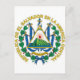 El escudo de armas de El Salvador se utiliza en su forma actual desde el 15 de septiembre de 1912. Su centro está formado por un triángulo, en el que cinco volcanes salen del mar. Simbolizan los cinco estados miembros de las Provincias Unidas de Centroamérica. Encima de los volcanes hay una gorra frigiana roja sobre un personal antes de un sol dorado y la fecha 15 de setiembre de 1821, Día de la Independencia de El Salvador. Sobre ella hay un arco iris que significa paz. Detrás del escudo de armas hay cinco banderas que representan las banderas de la República Federal de Centroamérica izadas. Debajo hay un pergamino que establece el lema nacional de El Salvador: Dios, Unión, Libertad. Todo ello rodeado por una guirnalda de laurel, atada bajo la bandera nacional. La guirnalda se divide en 14 partes diferentes, que simbolizan los 14 Departamentos, las unidades administrativas subnacionales salvadoreñas. Todo ello rodeado de letras doradas, que forman la palabra española REPÚBLICA DE EL SALVADOR EN LA AMÉRICA CENTRAL: República de El Salvador en América Central).