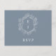 Postal Escudo Floral Azul Dusty Boda Monograma RSVP