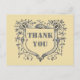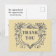 Expresa tu agradecimiento a tus clientes leales con esta tarjeta postal de escudo gris vintage. Este diseño presenta un escudo ornamentado rodeado de elementos botánicos de vid. El centro de este escudo presenta las palabras "Gracias" en fuente gris grande. La parte posterior de esta tarjeta postal ofrece palabras adicionales de agradecimiento y el nombre de su empresa que se puede personalizar fácilmente.