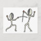 El diseño de la valla muestra a dos expertos en duelo con títeres y máscaras, demostrando empuje y posturas de partido. Imagen de Guay para aficionados a las esgrimas.