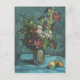 Postal Espaldas de época sobre flores de fondo negro rosa