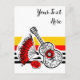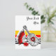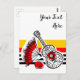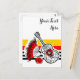 Diseño caprichoso de estilo retro con recuerdos de una fiesta española; guitarra de hierro forjado, ventilador de encaje y rosa roja sobre fondo a rayas. Un diseño de personalizable en blanco, negro, rojo y amarillo dorado para que puedas personalizar con tu propio texto, imágenes e ideas. Imagen original de arte digital.