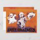 ¡Tres criaturas aterradoras para la noche de Halloween! ¡Todo listo para asustarte y darte un susto! Desee a su gente favorita una Halloween Feliz. El diseño divertido incluye un fantasma volador, momia y murciélago volador. Enviar a la familia y amigos, niños y nietos.