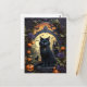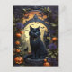 Acepte el espeluznante espíritu de Halloween con esta preciosa postal, con un majestuoso gato negro sentado confiadamente en medio de una arcada gótica. Rodeada de calabazas talladas, murciélagos espeluznantes y flores moradas oscuras, la escena captura perfectamente el encanto místico de la noche de Halloween. Al fondo, una casa embrujada y una luna resplandeciente crean un ambiente encantador. Ideal para enviar encantadores saludos a los amigos o para añadir un toque mágico a tu decoración de Halloween.
