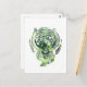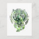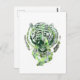 arte decorativo de una cabeza de tigre grande con colores verde surrealista en una postal