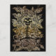 esqueleto con flores rosas arte oro Postcard
