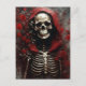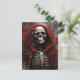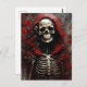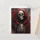 Postal Esqueleto en un Cabo Rojo con flores