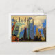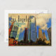 Edificios brillantes en el horizonte de una gran ciudad hacen que este diseño retro de Los Ángeles, California pop a lo grande.