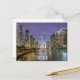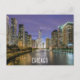 A cualquiera le encantaría recibir esta postal de viaje con una hermosa foto del río Chicago y el horizonte de la ciudad en Chicago, Illinois por la noche.