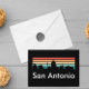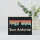 Postal colorida y de moda San Antonio Vintage Cityscape con la silueta de la ciudad de Texas y una combinación de colores vintage de la puesta de sol. Excelente idea de regalo y recuerdo.